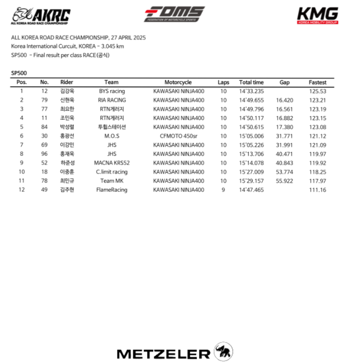 2025 AKRC Rd.1 SP500 결승 기록지