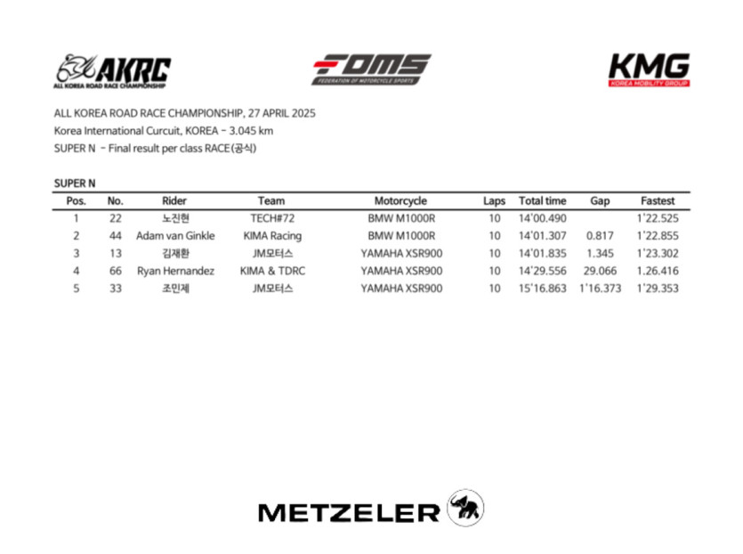 2025 AKRC Rd.1 SUPER N 결승 기록지