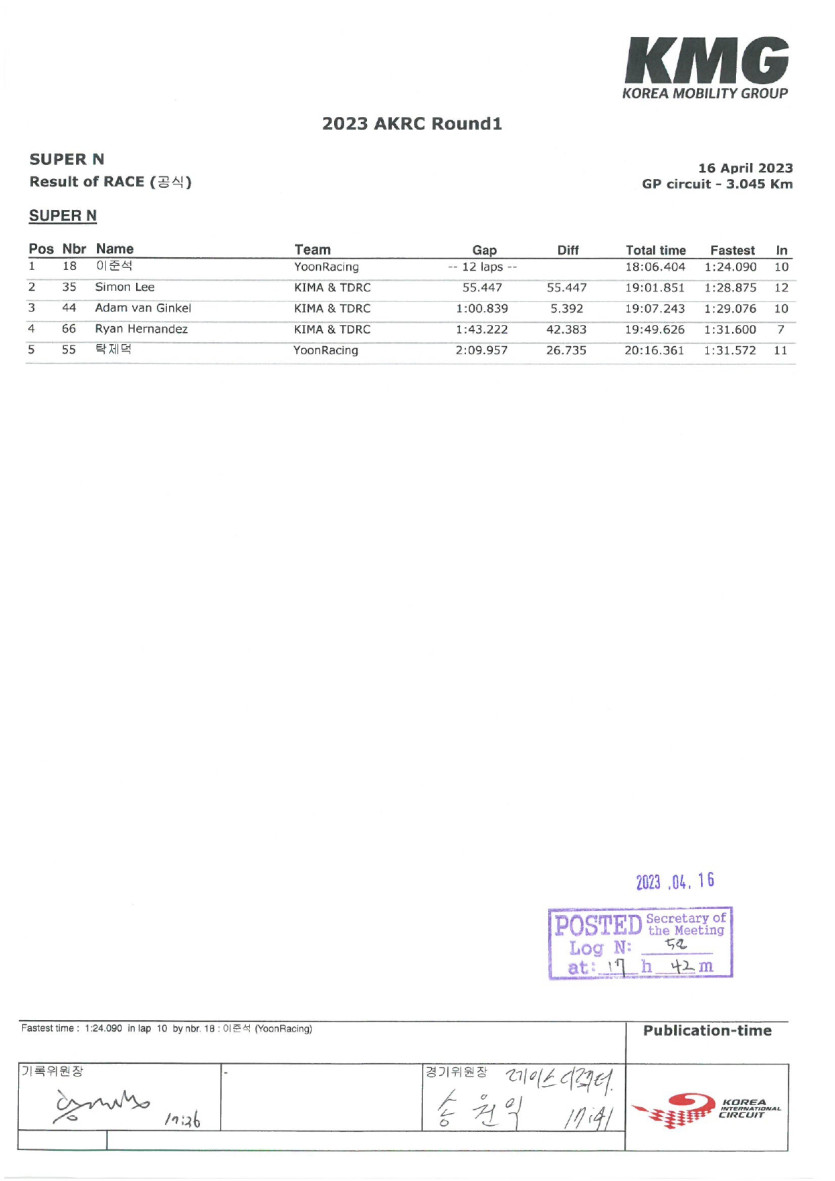 2023 AKRC Rd.1 SUPER N 결승 기록지 > 대회 결과 (Race Result)