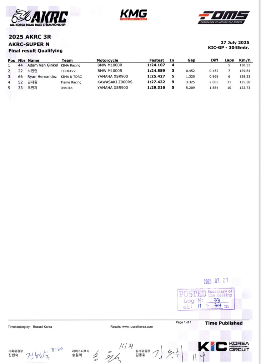 2025 AKRC Rd.3 SUPER N 예선 기록지