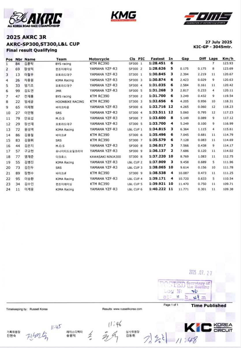 2025 L&L (Ladies & Legend) Cup Rd.1 예선 기록지입니다.