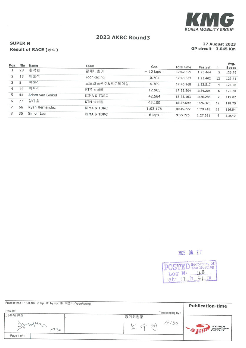2023 AKRC Rd.3 SUPER N 결승 기록지