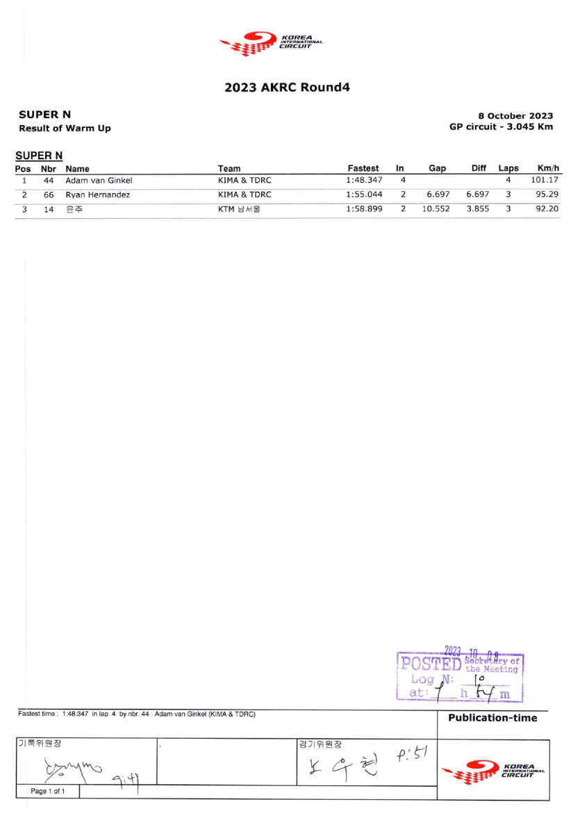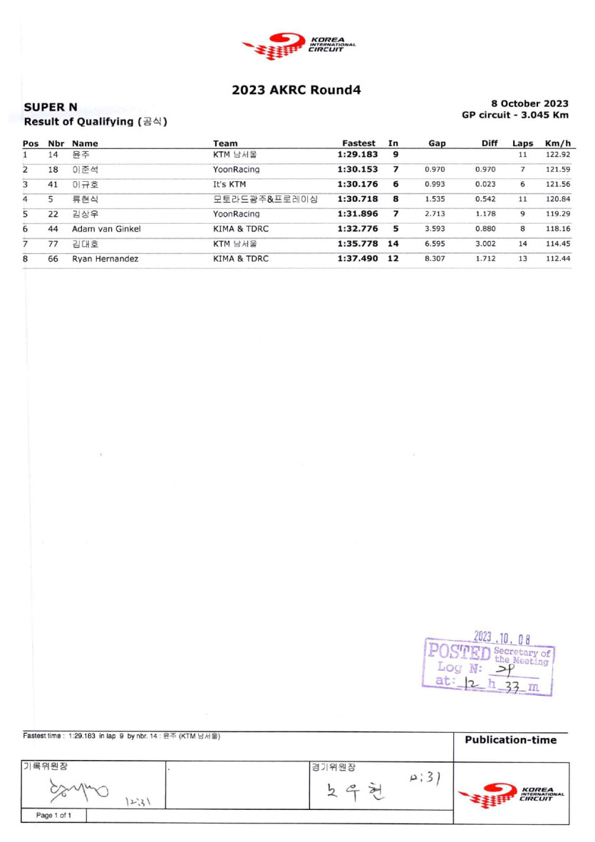 2023 AKRC Rd.4 SUPER N 연습 및 예선 기록지