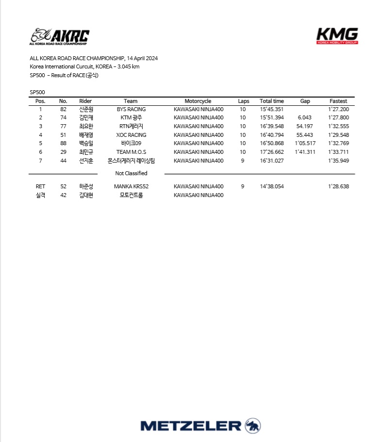 2024 AKRC Rd.1 SP500 결승 기록지 > 대회 결과 (Race Result)