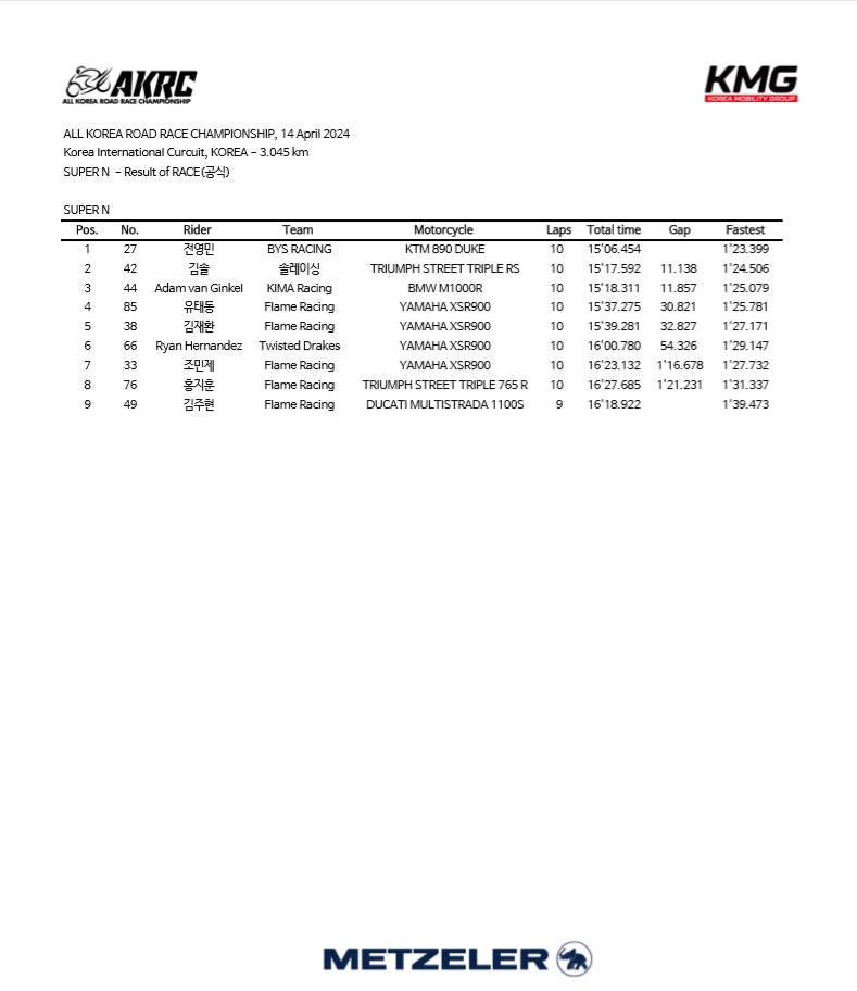 2024 AKRC Rd.1 SUPER N 결승 기록지