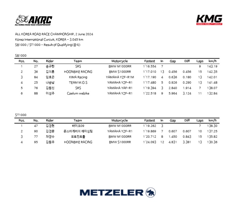 2024 AKRC Rd.2 SB1000&ST1000 예선 기록지