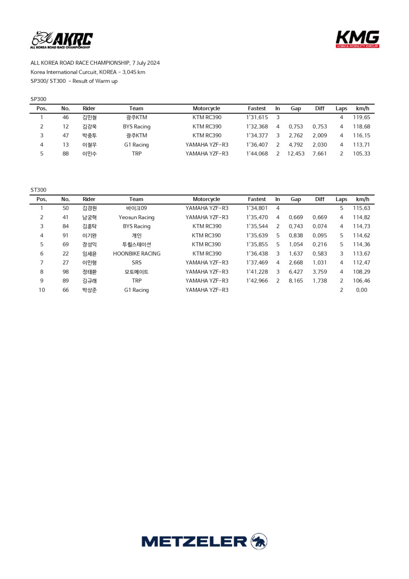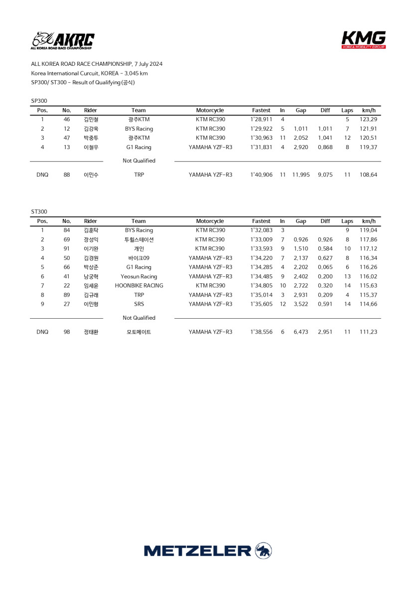 2024 Rd.3 SP300&ST300 연습 및 예선 기록지 > 대회 결과 (Race Result)
