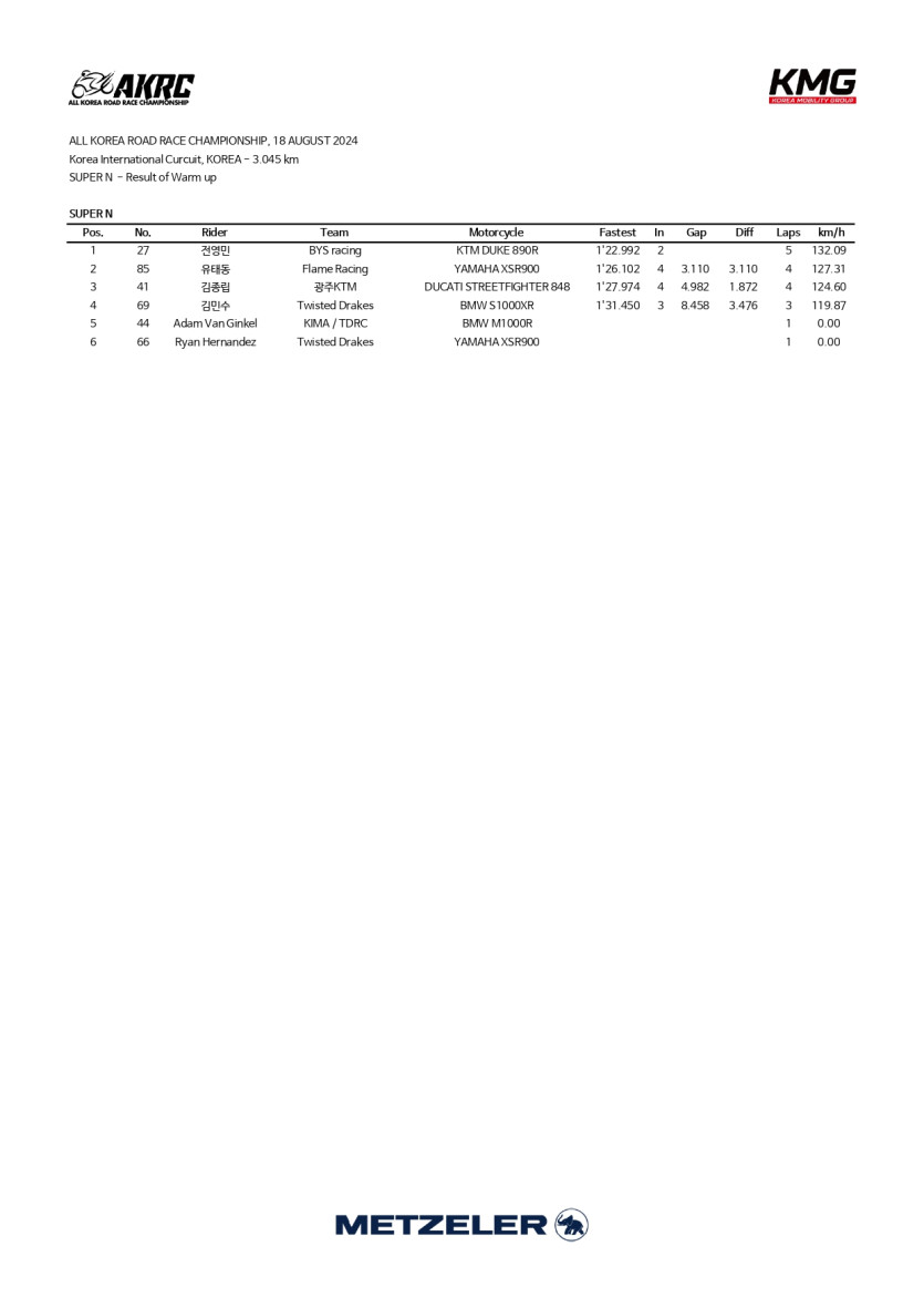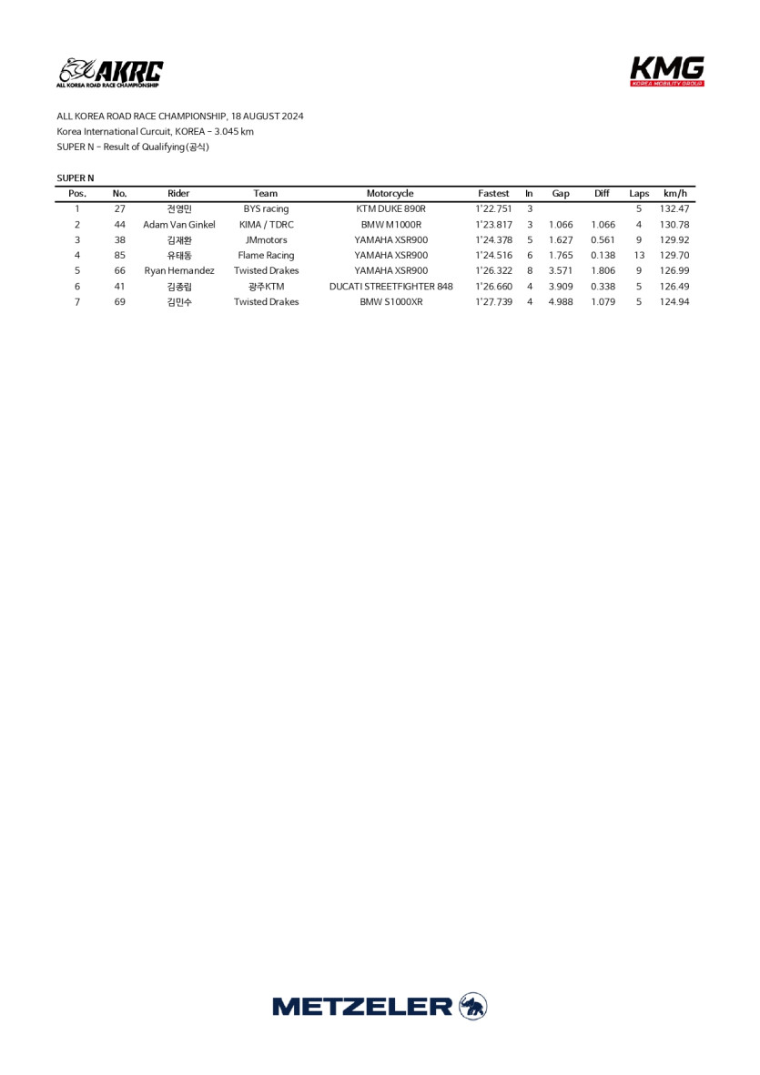 2024 Rd.4 SUPER N 연습 및 예선 기록지 > 대회 결과 (Race Result)