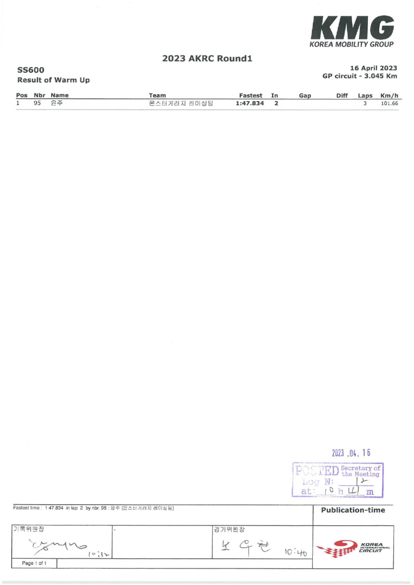 2023 AKRC Rd.1 SS600 연습 기록지