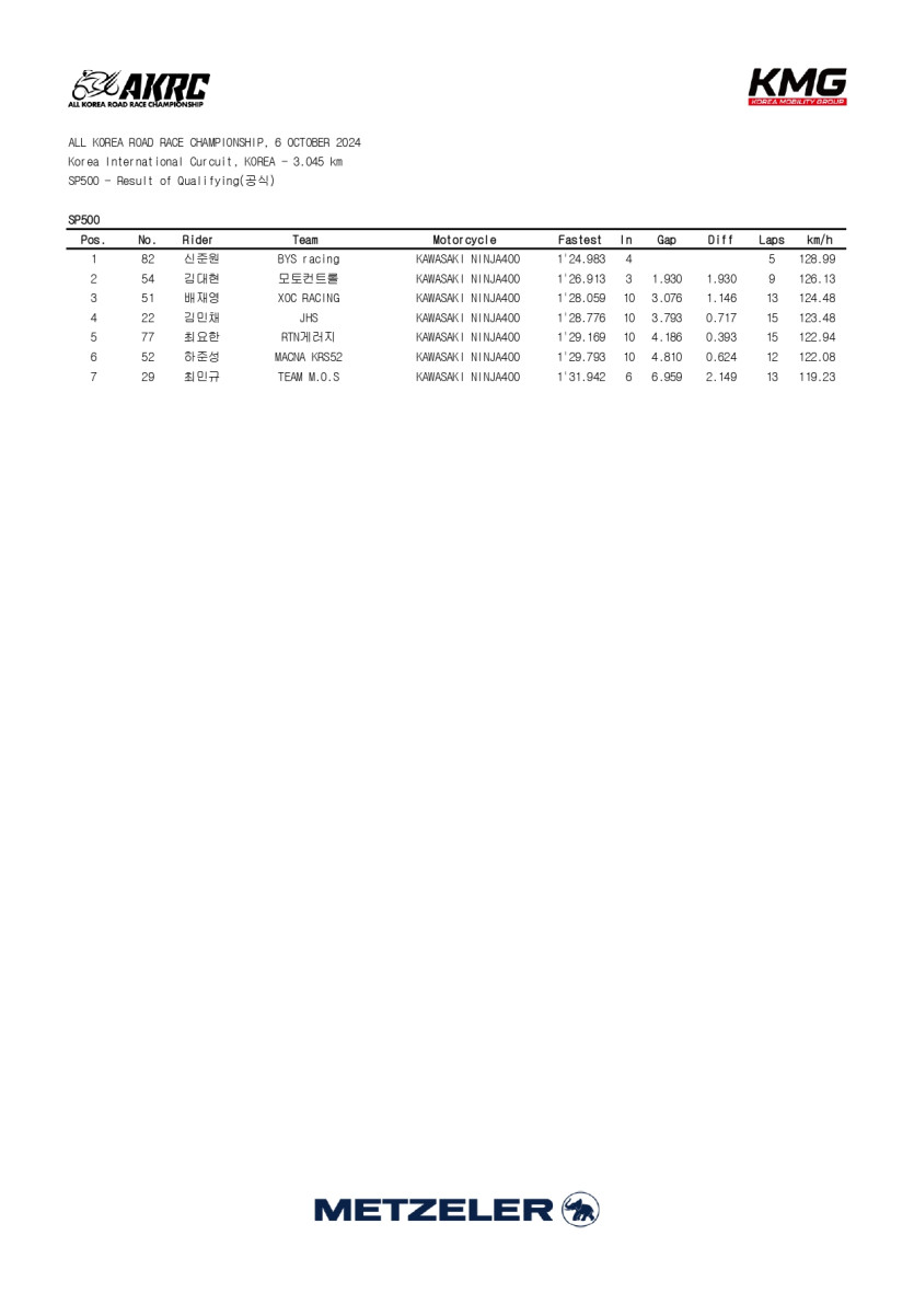 2024 Rd.5 SP500 연습 및 예선 기록지
