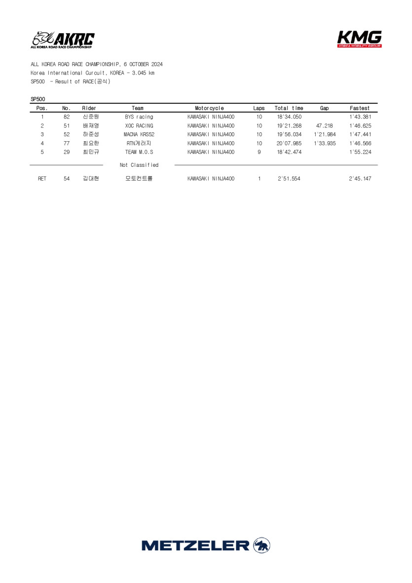 2024 Rd.5 SP500 결승 기록지 > 대회 결과 (Race Result)