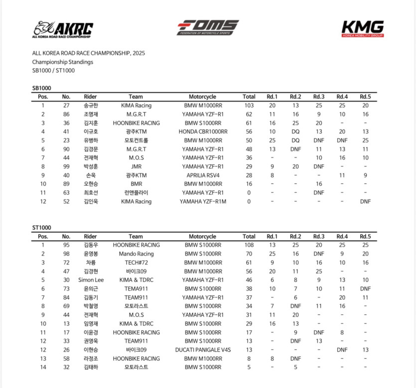 2025 AKRC FINAL STANDING - SB1000 > 종합기록실 (Data Room)