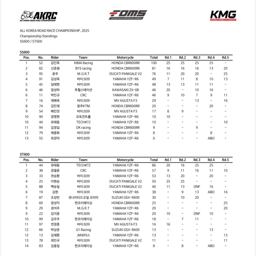 2025 AKRC SS600 클래스 최종 1~3위 순위를 공지드리오니 확인 부탁 드립니다.
